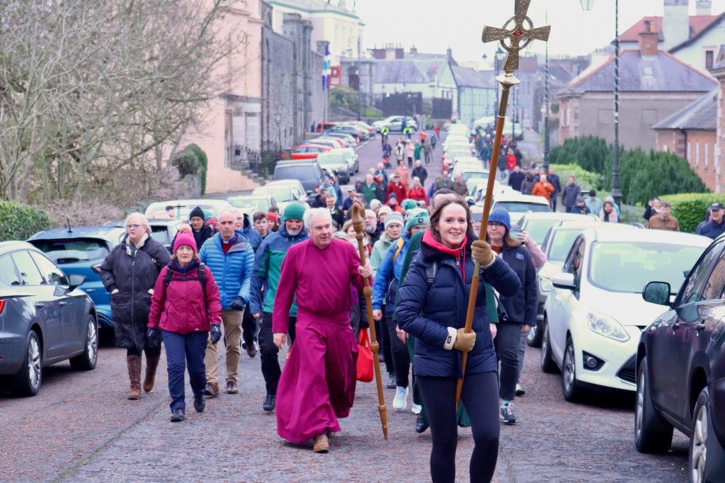 Then I took part in the pilgrimage from Saul to Down Cathedral before the festival service at 11.45. On the pilgrimage I usually enjoy some really interesting conversations. I meet some people I know, but many I don’t, who have made the pilgrimage to be part of this special day. People share something of their story with you as you walk together and stop to pray at about 4 points on the way.